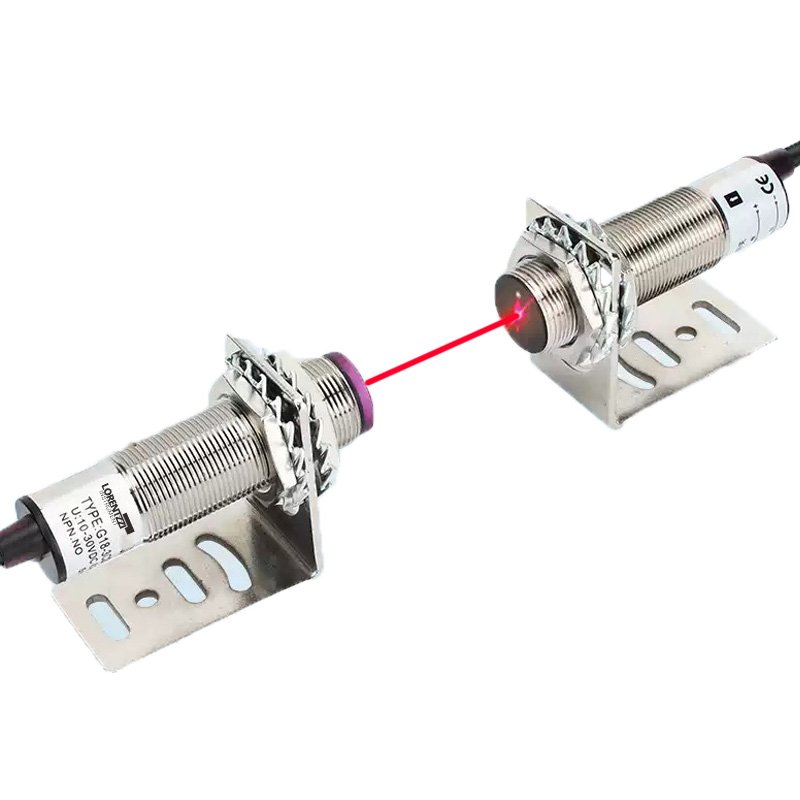 - Nuestro sensor G12 es un sensor fotoeléctrico de barrera de diámetro de rosca M12. Un sensor fotoeléctrico de barrera es un sensor de proximidad que utiliza la luz para detectar objetos. Consta de dos partes: una es un transmisor de luz y la otra es un receptor de luz. Las dos partes deben instalarse una frente a la otra.