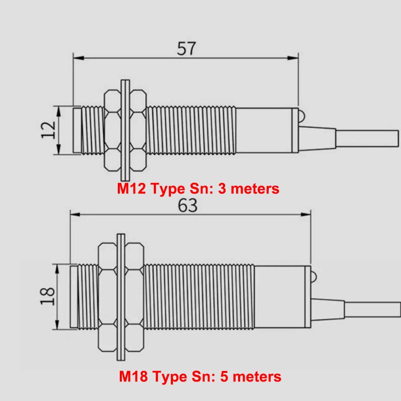 - Este sensor fotoeléctrico M12 tiene más de 6 modelos para elegir, la salida puede ser PNP o NPNmezclado con NO, NC o NO+NC.