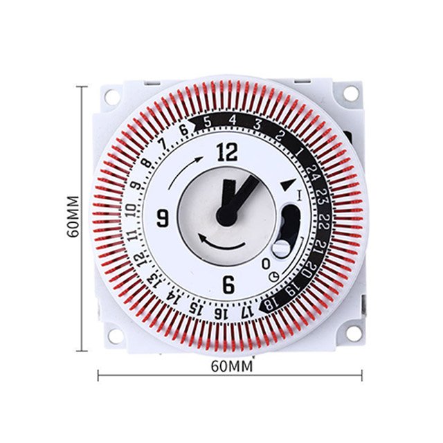 - Its working principle is very simple. For example, if you want to turn on the load between 15:00 and 16:00, first set the current time, then push out the knob between 15:00 and 16:00, and it will turn on the load according to the time you set.